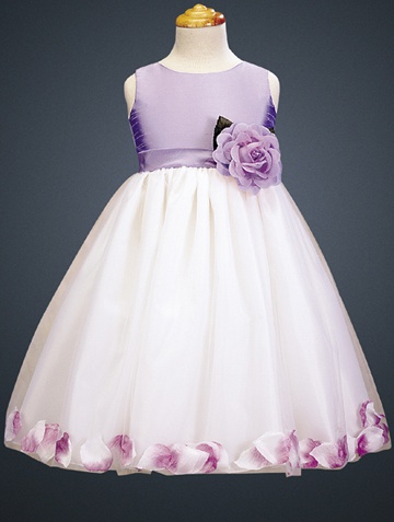 Нарядное платье для девочки, декорированное поясом со съемной розой и лепестками роз по подолу юбки. Лёгкое и воздушное, оно никого не оставит равнодушным!